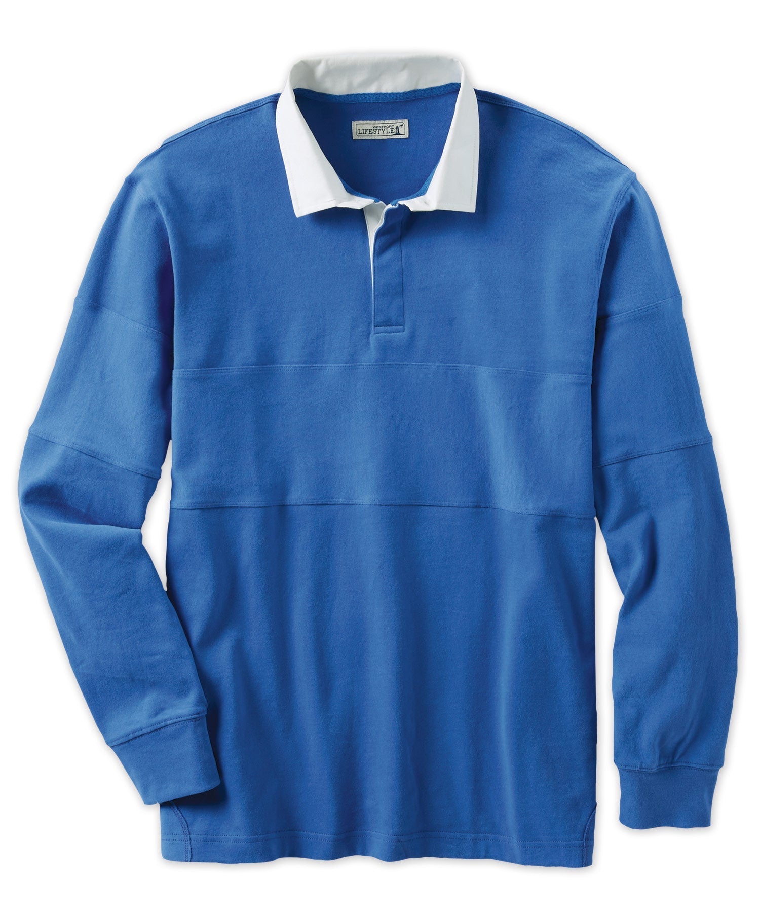 This traditional, English-style big and tall rugby shirt takes inspiration from classic athletic wear. It comes with reinforced details to make it comfortable yet substantial, and is accented with plenty of vintage detailing: a contrast woven collar, ribbed cuffs, and a covered placket.