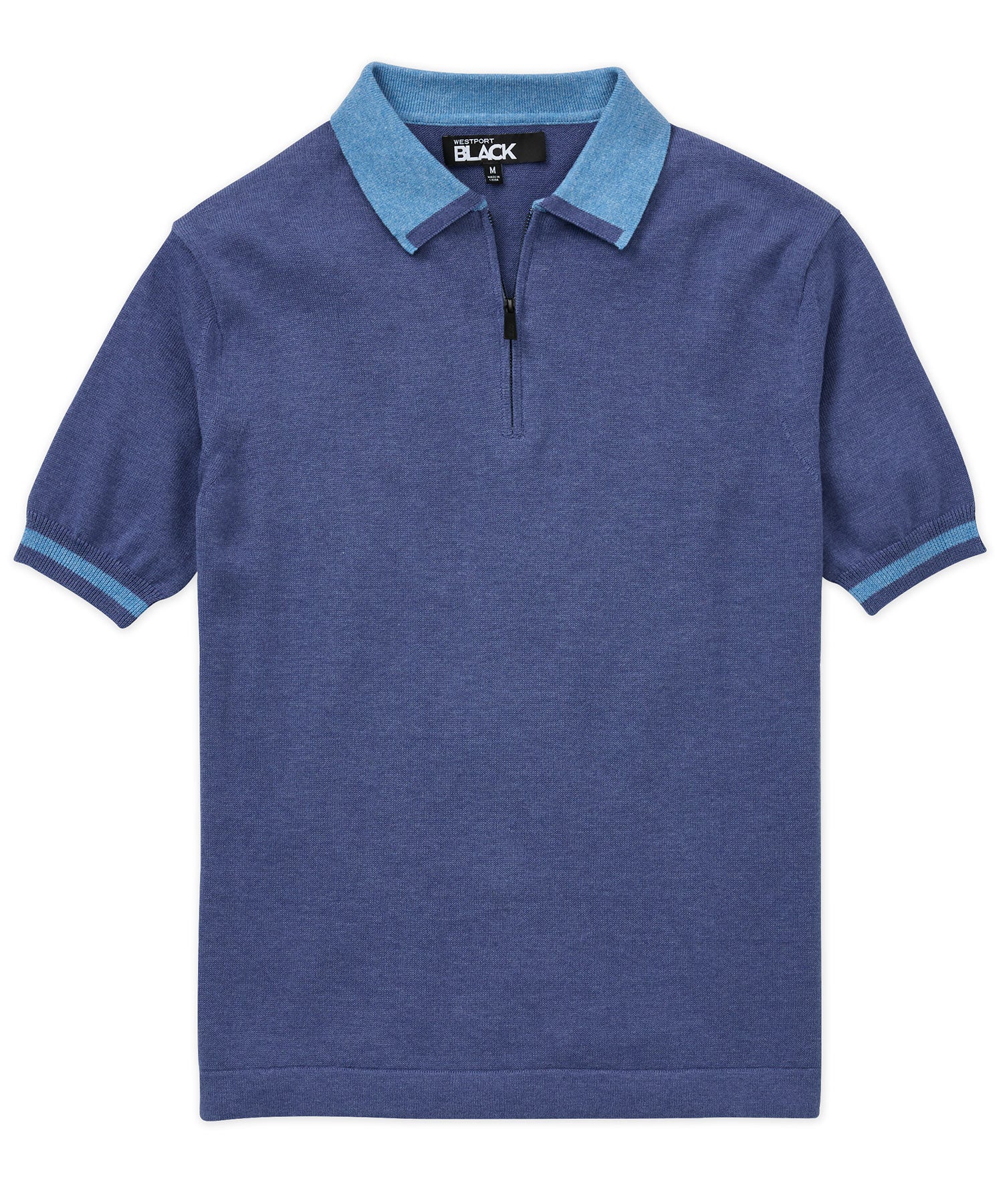 Westport Black The Retro Tipped Collar Zip Polo Knit Shirt