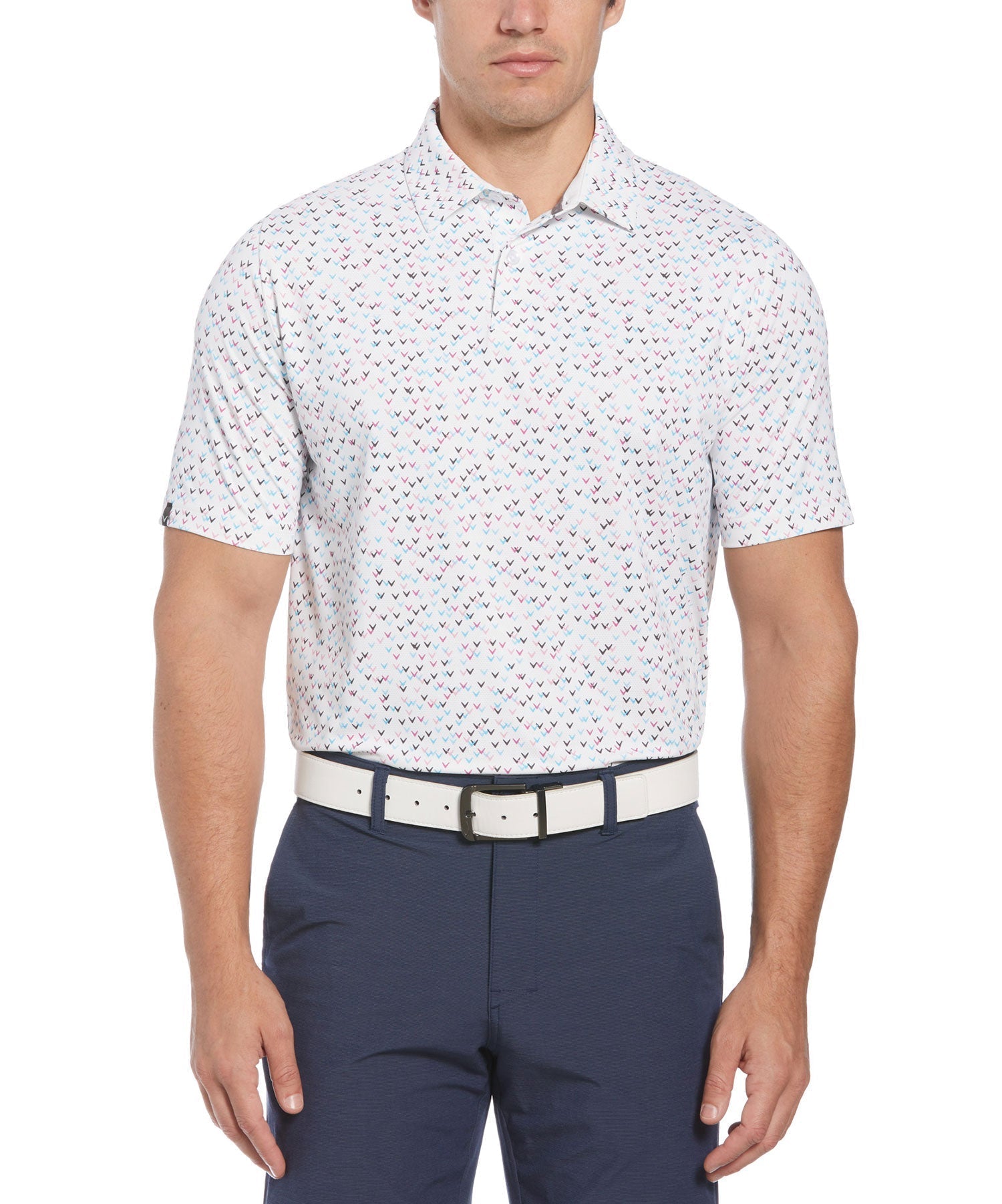 Callaway Short Sleeve Confetti Print Polo Knit Shirt