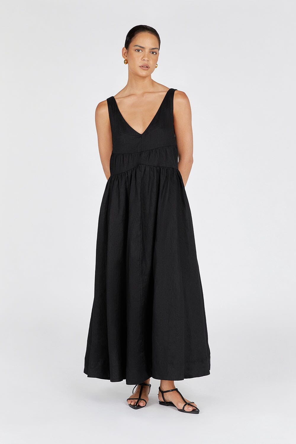 ARLO BLACK V NECK LINEN MAXI DRESS