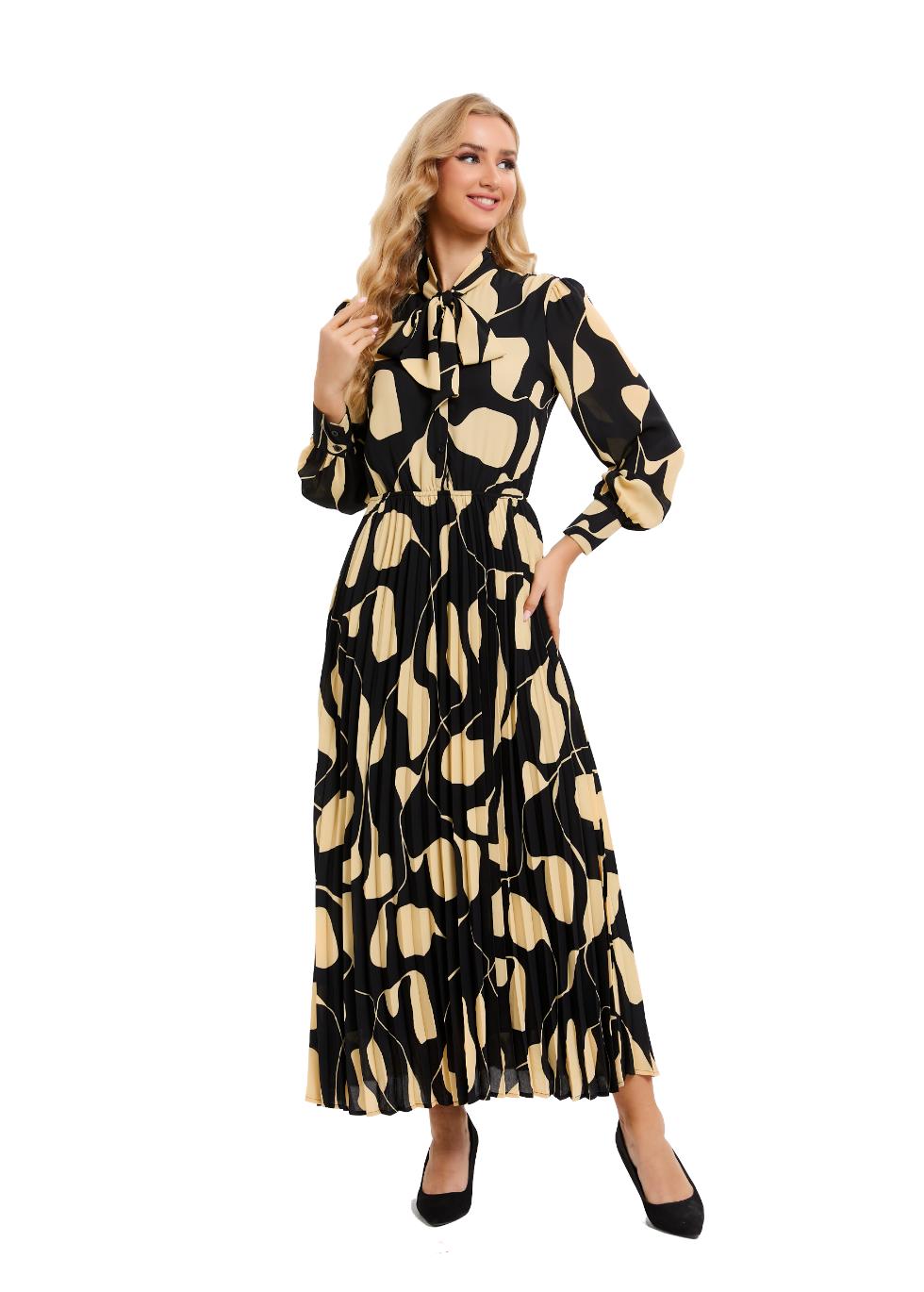 Introducing our Black and Beige Belted Midi Dress. This sophisticated ensemble combines classic elegance with contemporary flair.