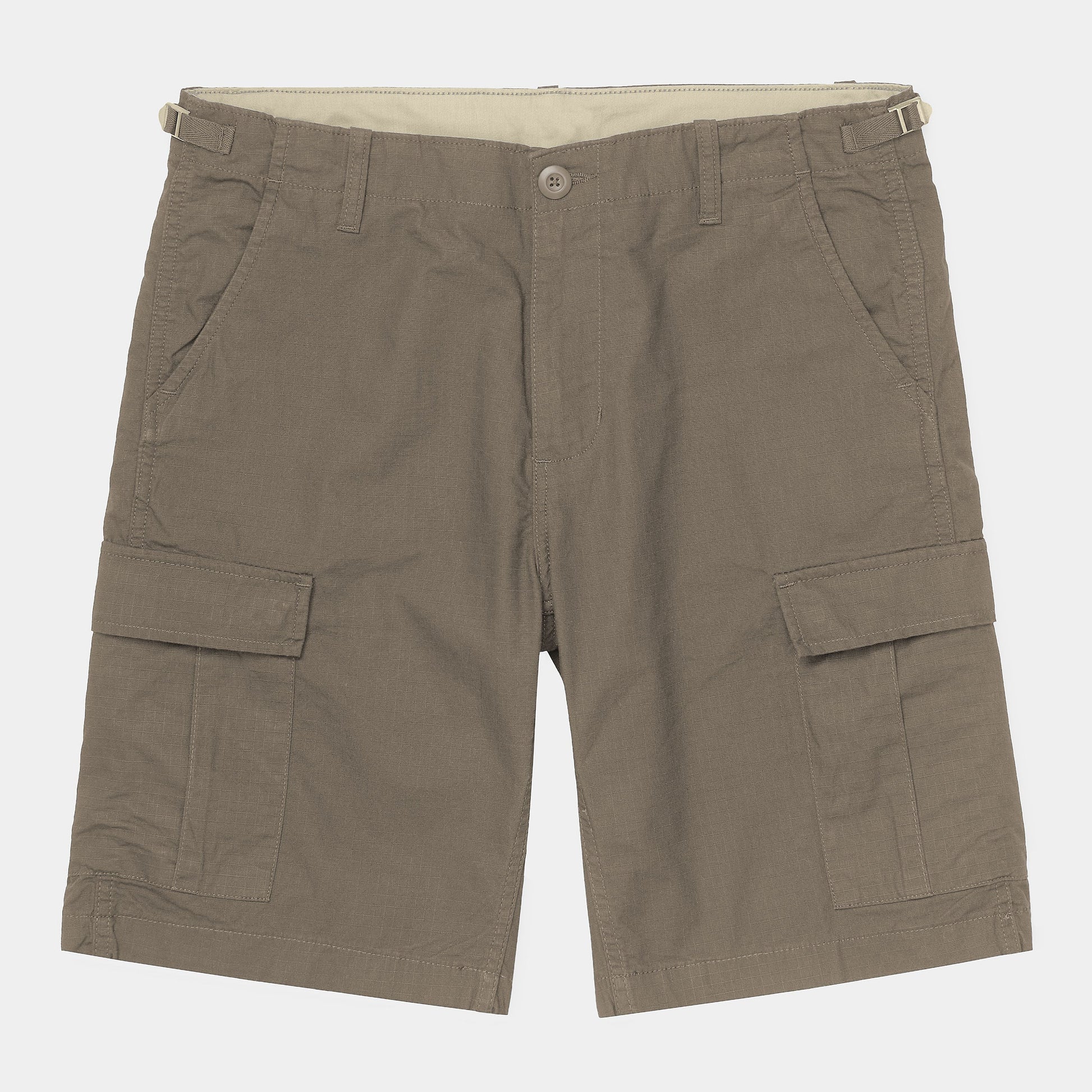 The Carhartt WIP Aviation Short is a slim cargo short constructed from a lightweight cotton ripstop fabric. This tough cotton has been rinsed for added comfort without sacrificing its durable qualities. Features subtle Carhartt WIP label detailing on the left pocket.