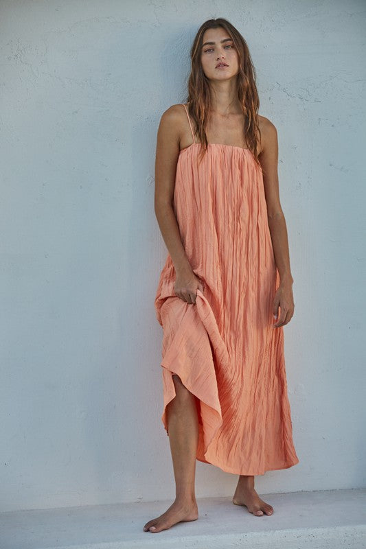 Get ready to turn heads and chase sunsets in our Woven Polyester Maxi Dress. With a flirty tube neck, delicate spaghetti straps, and a flowy silhouette, this dress is perfect for any occasion. Made with a comfortable lining, you'll feel both stylish and carefree while chasing those golden hour vibes.