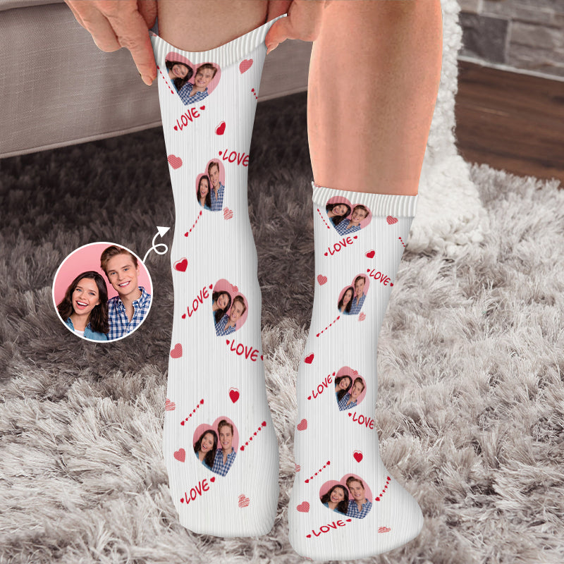 Custom Photo Face Love Couple - Personalized Customized Socks - Gift For Couple Lover - Valentine's Day Gift