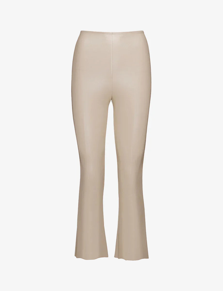 Commando's Faux Leather Cropped Flare Leggings feature our signature internal smoothing waistband made from a firming fabric that doesn't bag or sag. The faux leather is soft but flexible with incredible four-way stretch and recovery. Even better, these high-rise, cropped flare leggings are machine washable.