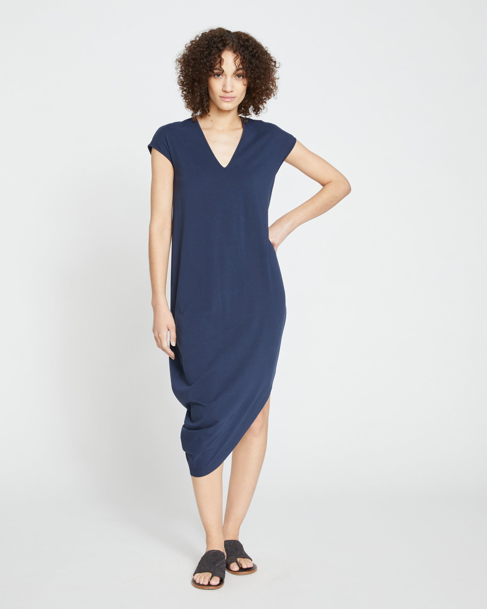 The dress that started it all - with a twist. With a narrow v-neck, this dress is versatile, stylish, and best of all, comfortable. It's the effortless option you'll reach for every time. Made from a Peruvian cotton blend we developed ourselves from the thread up, this piece is colorfast, has incredible bounce-back, and is pilling resistant.