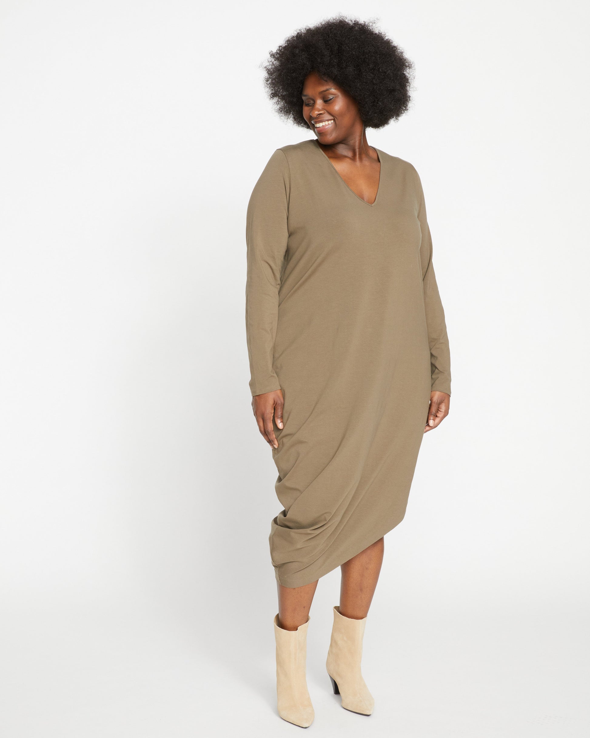 The dress that started it all - with a twist. With long sleeves and a narrow v-neck, this dress is versatile, stylish, and best of all, comfortable. It's the effortless option you'll reach for every time. Made from a Peruvian cotton blend we developed ourselves from the thread up, this piece is colorfast, has incredible bounce-back, and is pilling resistant.