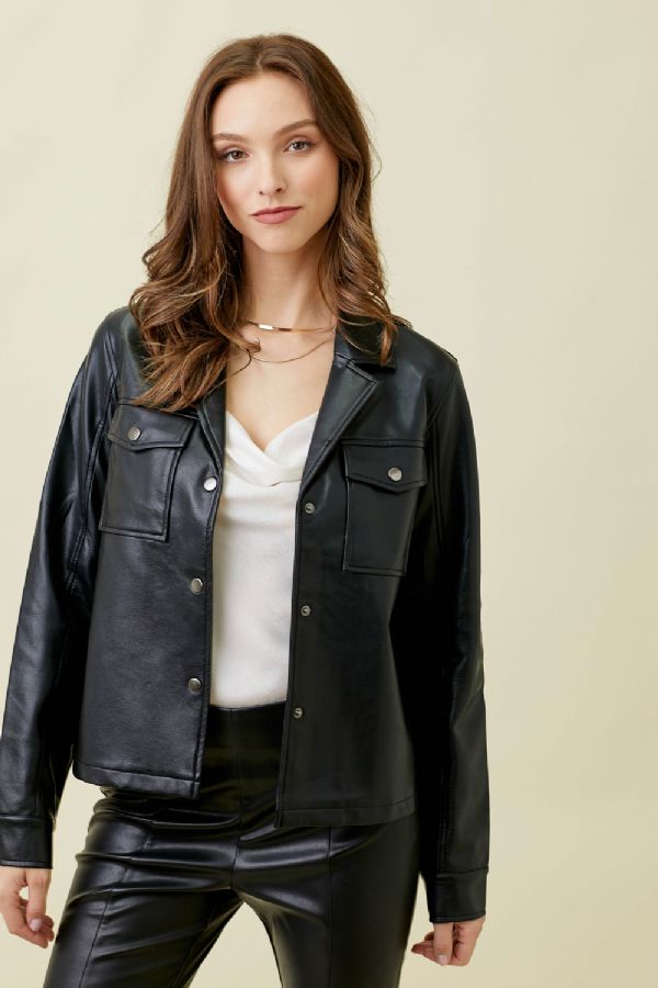 Experience luxurious style with the Julie Jacket. Crafted from premium leather, this sleek jacket features a classic collared design and snap button closure for a timeless look. Practical pockets offer stylish convenience, making the Julie Jacket perfect for every occasion.