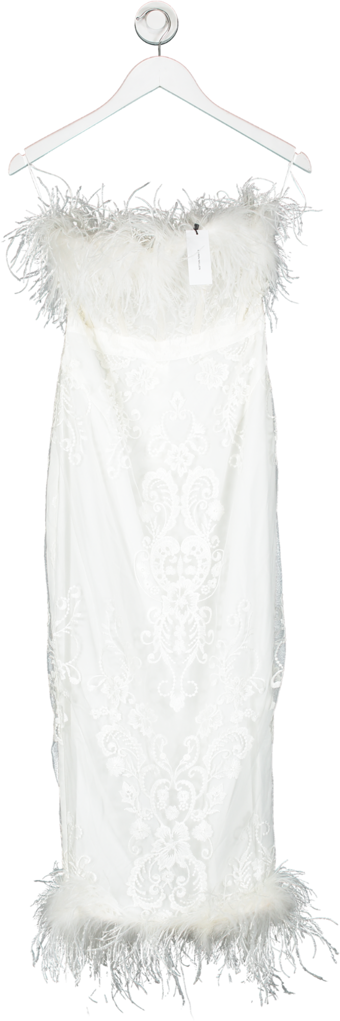 Karen Millen White Graphic Embroidered Mesh Feather Woven Midi Dress UK 8