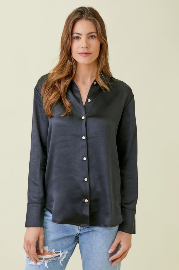 The Kristie Top in Black is the perfect statement piece for any wardrobe. Its soft silky fabric, hi-lo hem, collared neckline, and buttoned cuffs make it a luxurious addition to any outfit. From the office to a night out, the Kristie Top will quickly become a staple in your wardrobe.
