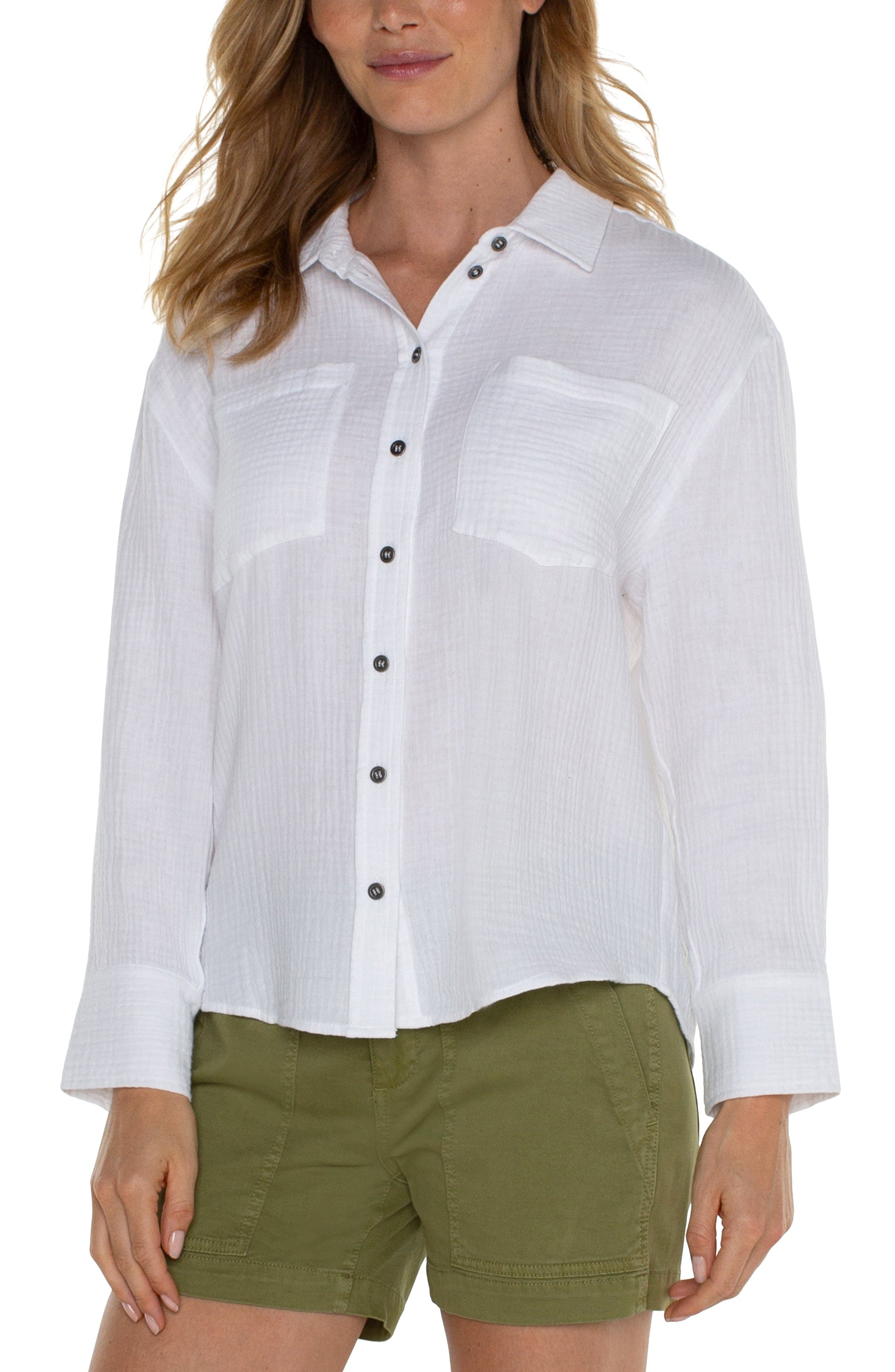 Indulge in the effortless luxury of our Long Sleeve Button Front Shirt. Crafted with a sophisticated, button-front design, this shirt exudes elegance and style. The long sleeves provide a timeless touch, while the button front adds a touch of opulence. A must-have addition to any wardrobe.