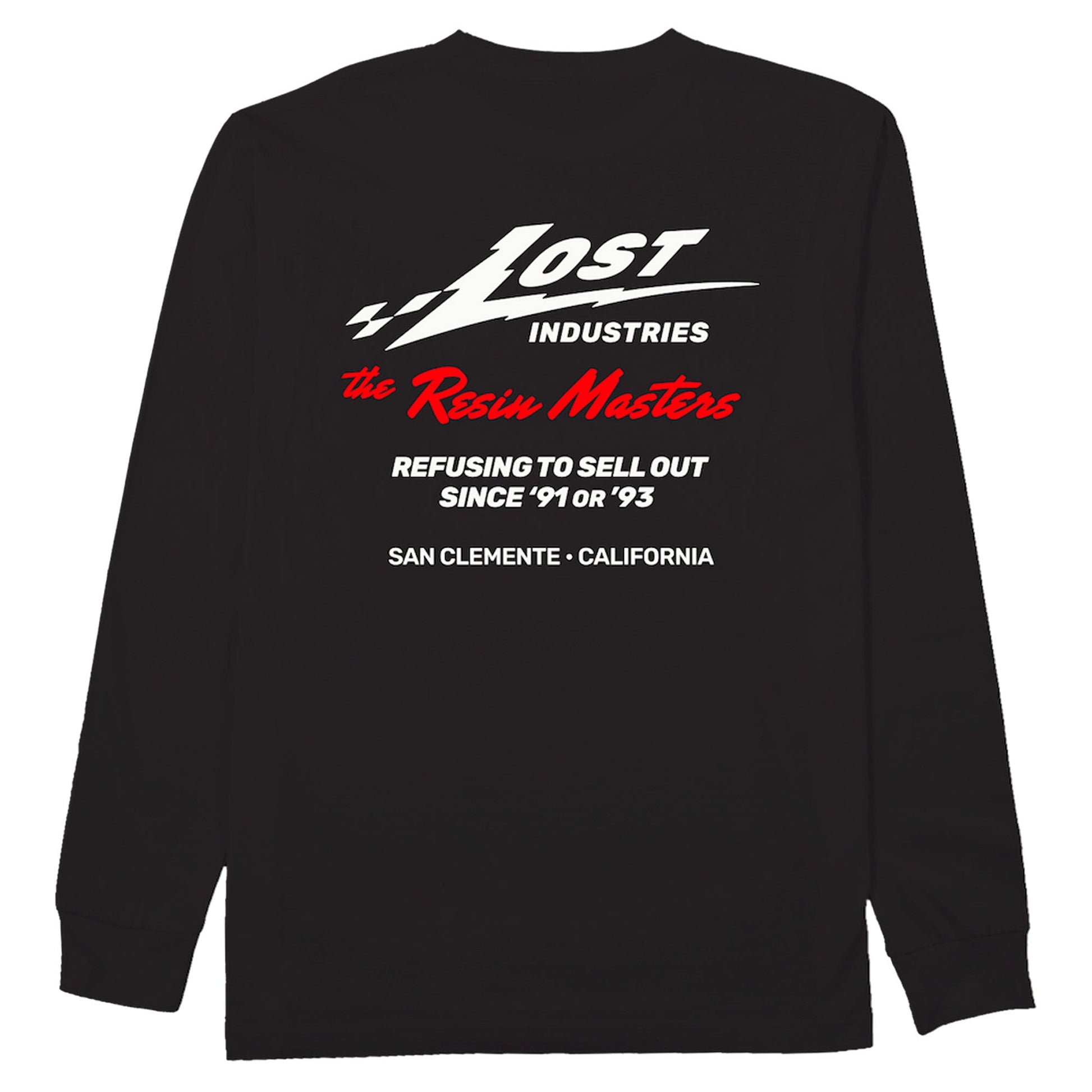 The Lost Resin Masters Heavy Men's L/S Shirt is a heavy weight 100% cotton tee. This shirt has a smaller screen print art feature on the left chest area, a large screen print design on the back, and a screen print of the lost logo down the left arm.