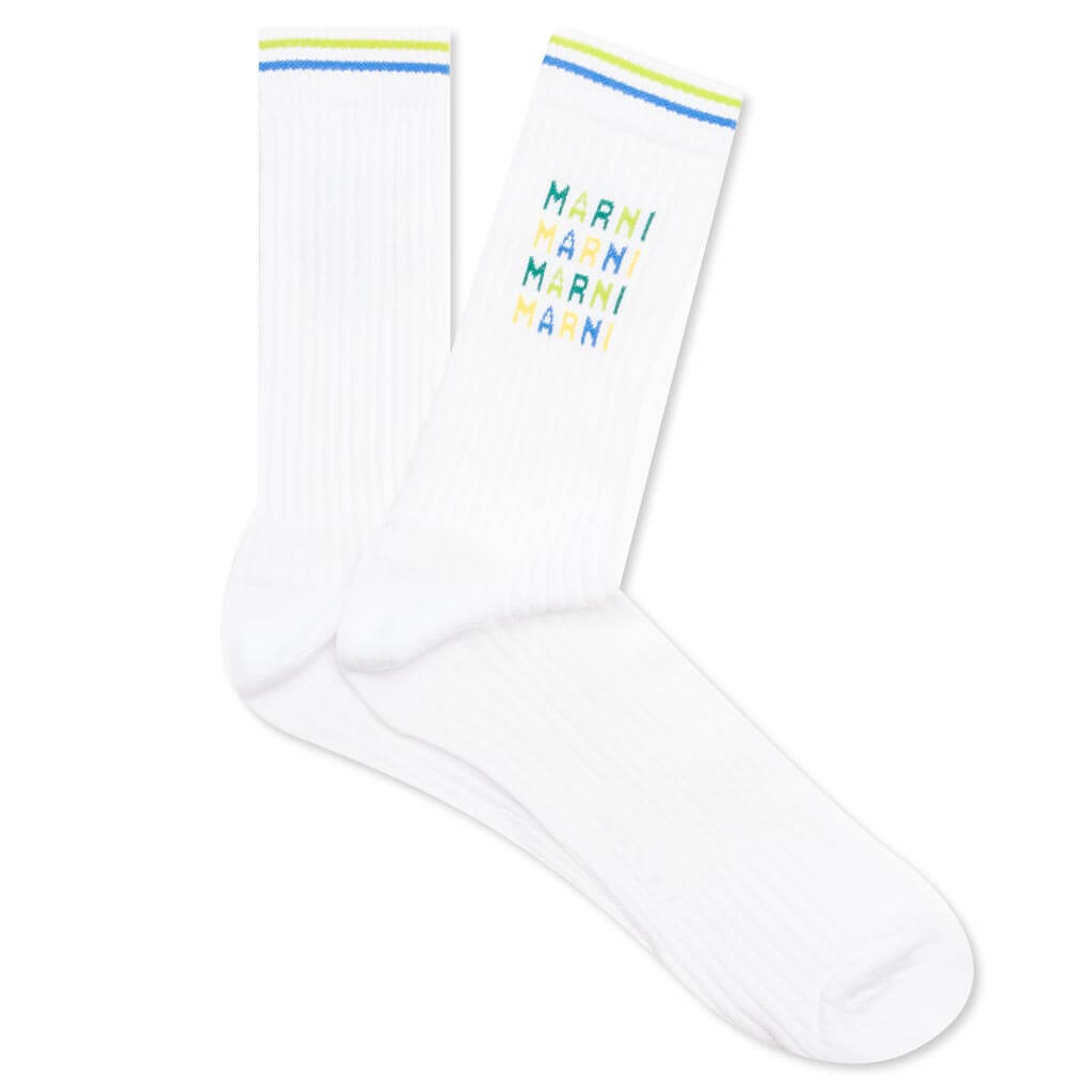 Taking on a Terry cotton construction, the Marni Socks are a must-have for any collection. The socks are embellished with signature Marni branding that adds dimension. The ribbed detailing completes the design.