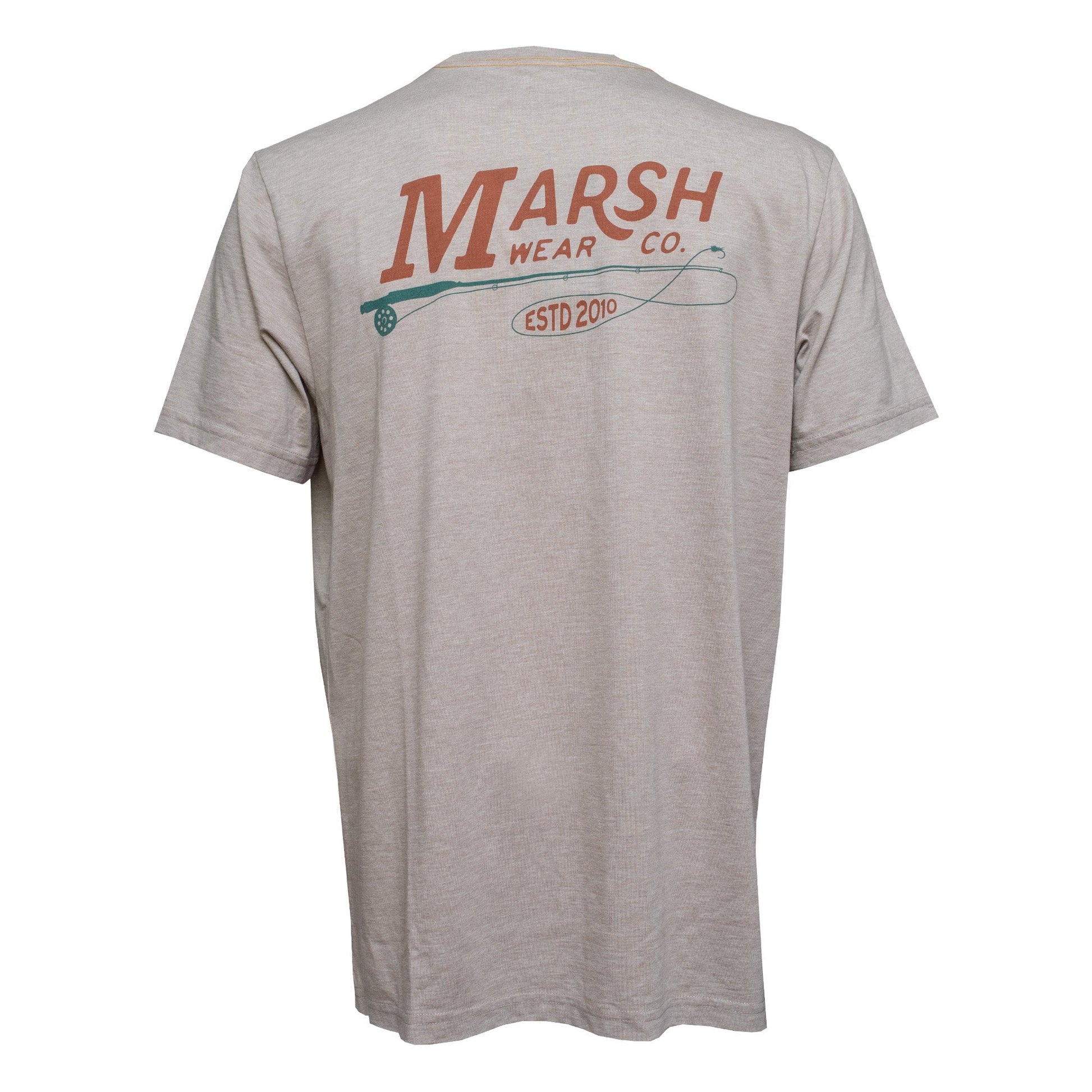 The Marsh Wear Circulate Men's S/S T-Shirt is soft to the touch and a design rooted in Charleston, SC. There is a small screen print on the front chest area of the tee and a large screenprinted design on the back of the tee.