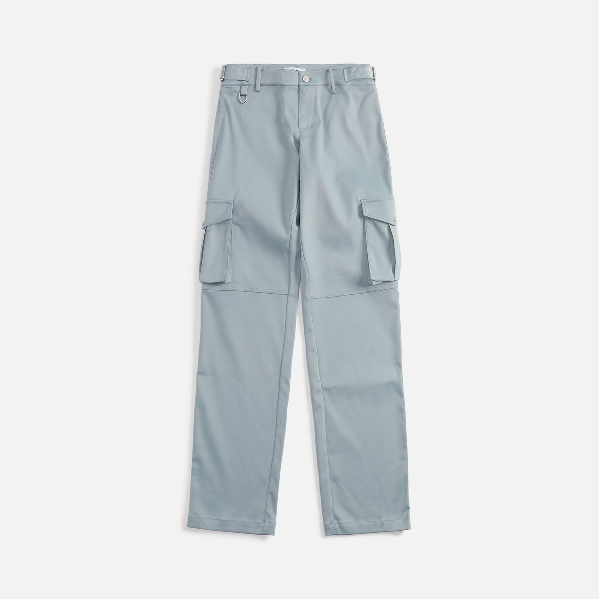 Flap pockets with snap button closure on leg