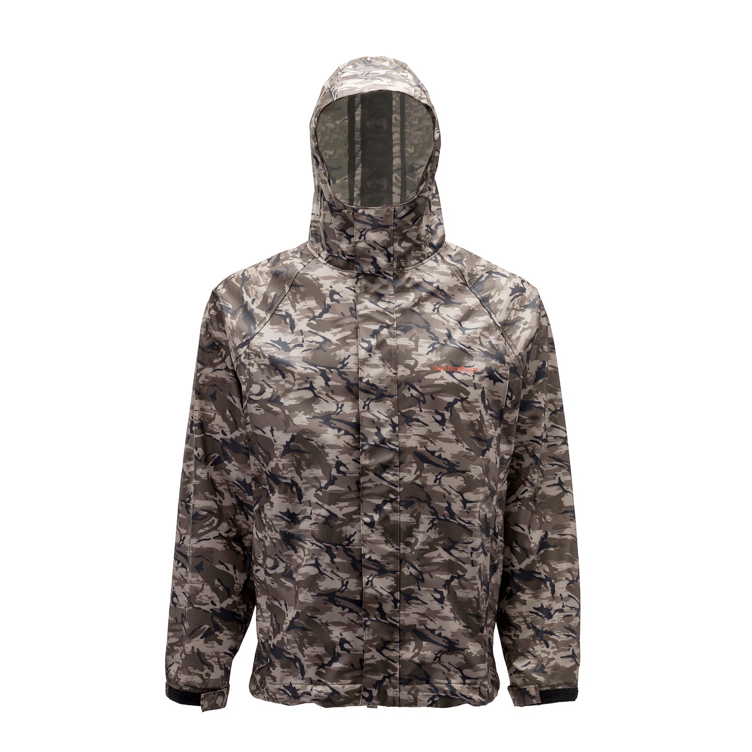 Full-zippered hooded jacket made from medium-weight polyurethane-coated polyester fabric provides 100% waterproof protection and the comfort and ease of movement active fishermen need. An athletic cut and underarm gussets deliver protection without restricting fishing action.