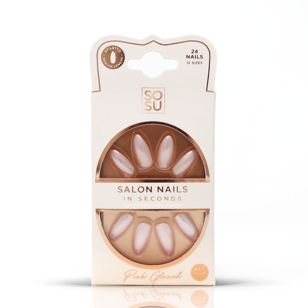 Salon nails in seconds! Having the perfect nail is literally at your fingertips. High gloss, glazed chrome effect nails. The perfect nails all year round. Made in a stunning stiletto shape to instantly slenderise on the finger, a modern almond shape is characterised by slim sides that meet with a rounded point and a tapered curved tip.
