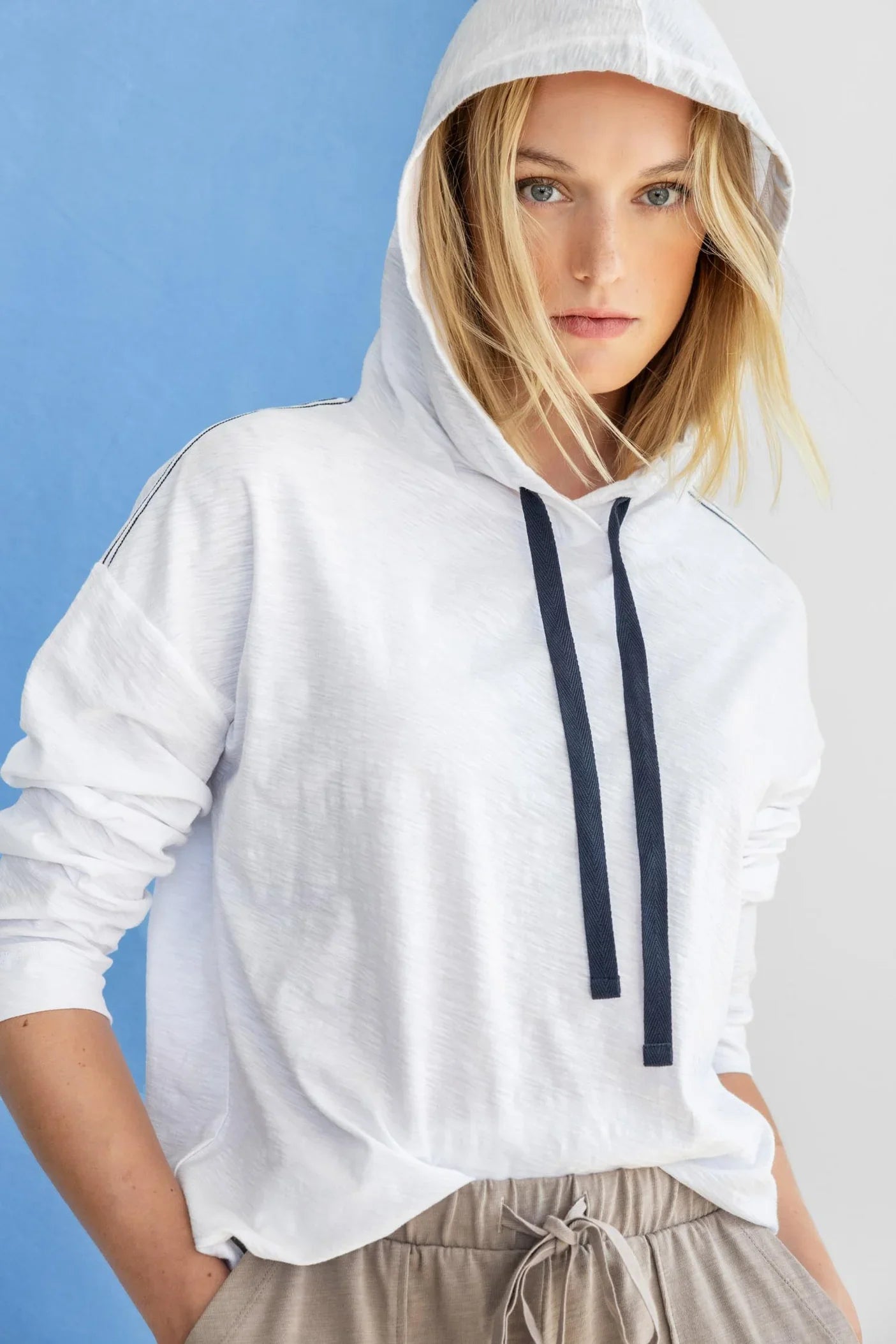 Elevate your beach style with our lightweight Relaxed Hoodie. Roll the sleeves and cinch with the contrasting twill tape drawstring for an effortless look. Coordinate with shorts or any of your favorite pieces for a chic, versatile outfit.