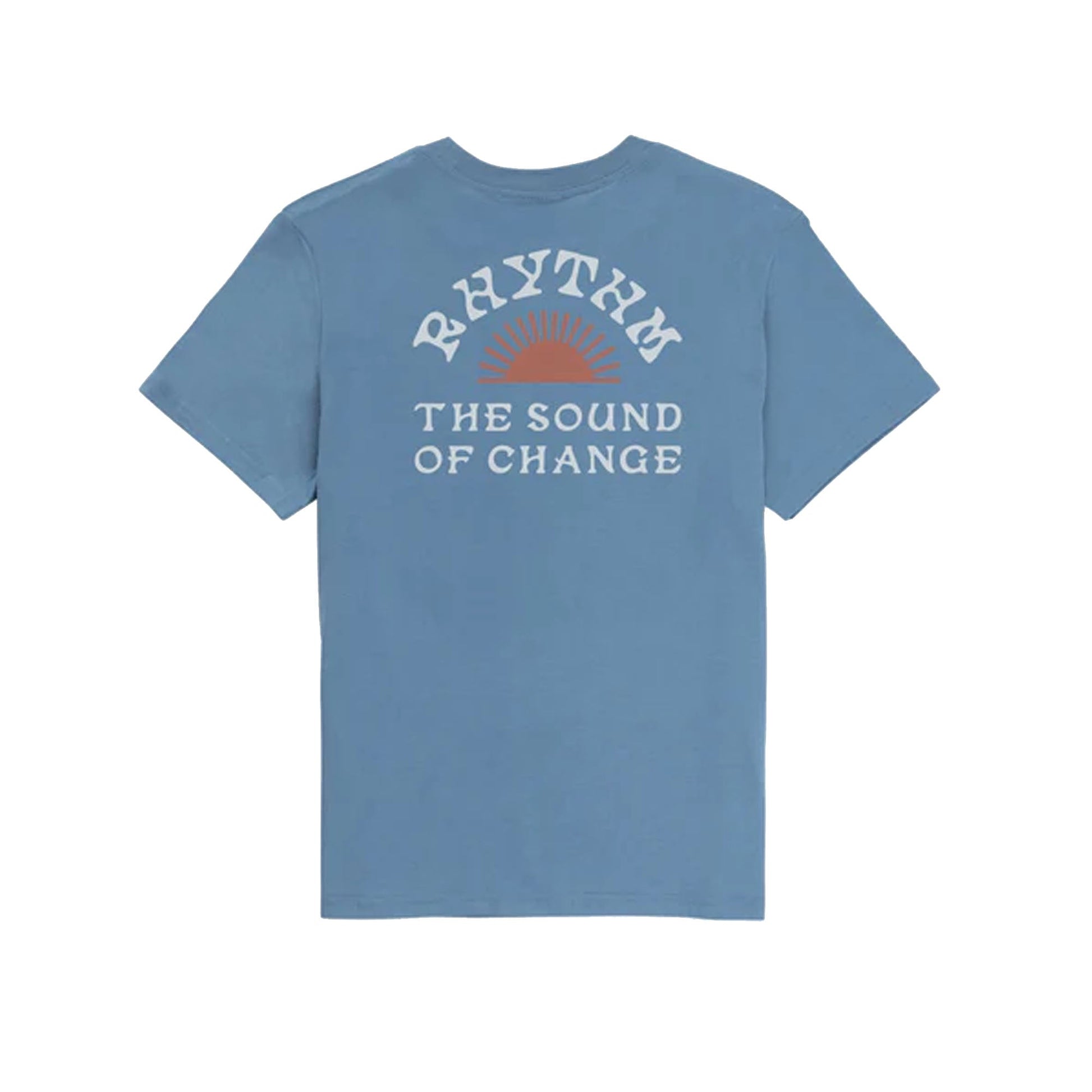 The Rhythm Awake Men's S/S T-shirt. A Rhythm standard fit t-shirt responsibly cut from certified organic cotton and pre-washed for a soft hand feel, the Awake Short Sleeve T-Shirt features a classic surf inspired chest and back screen print.