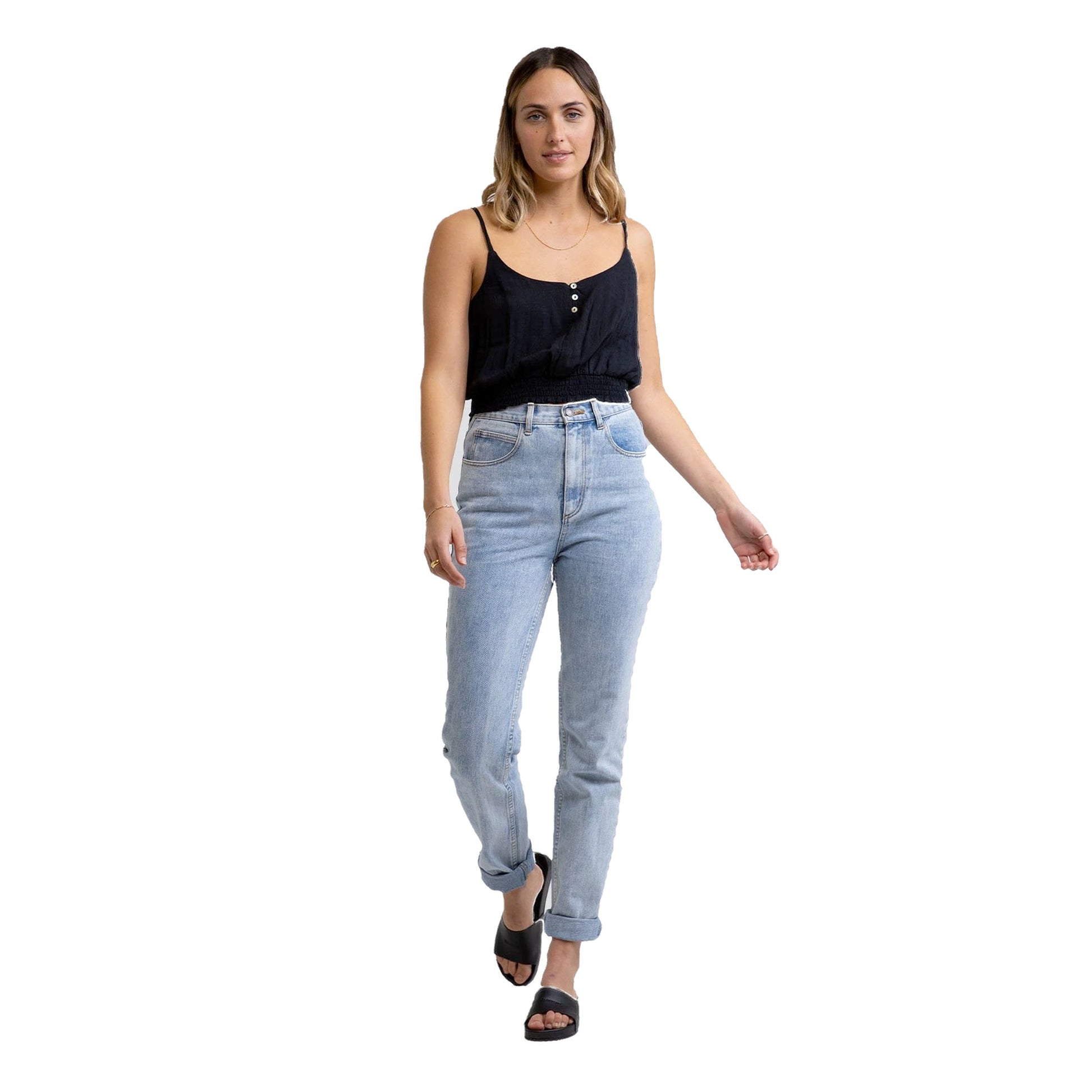 The classic Hi-Rise Tapered Jean in Light wash is your everyday go to, featuring an easy wear high-waisted style and a mom shape fit in a pure cotton denim. This jean is already a proven favourite.