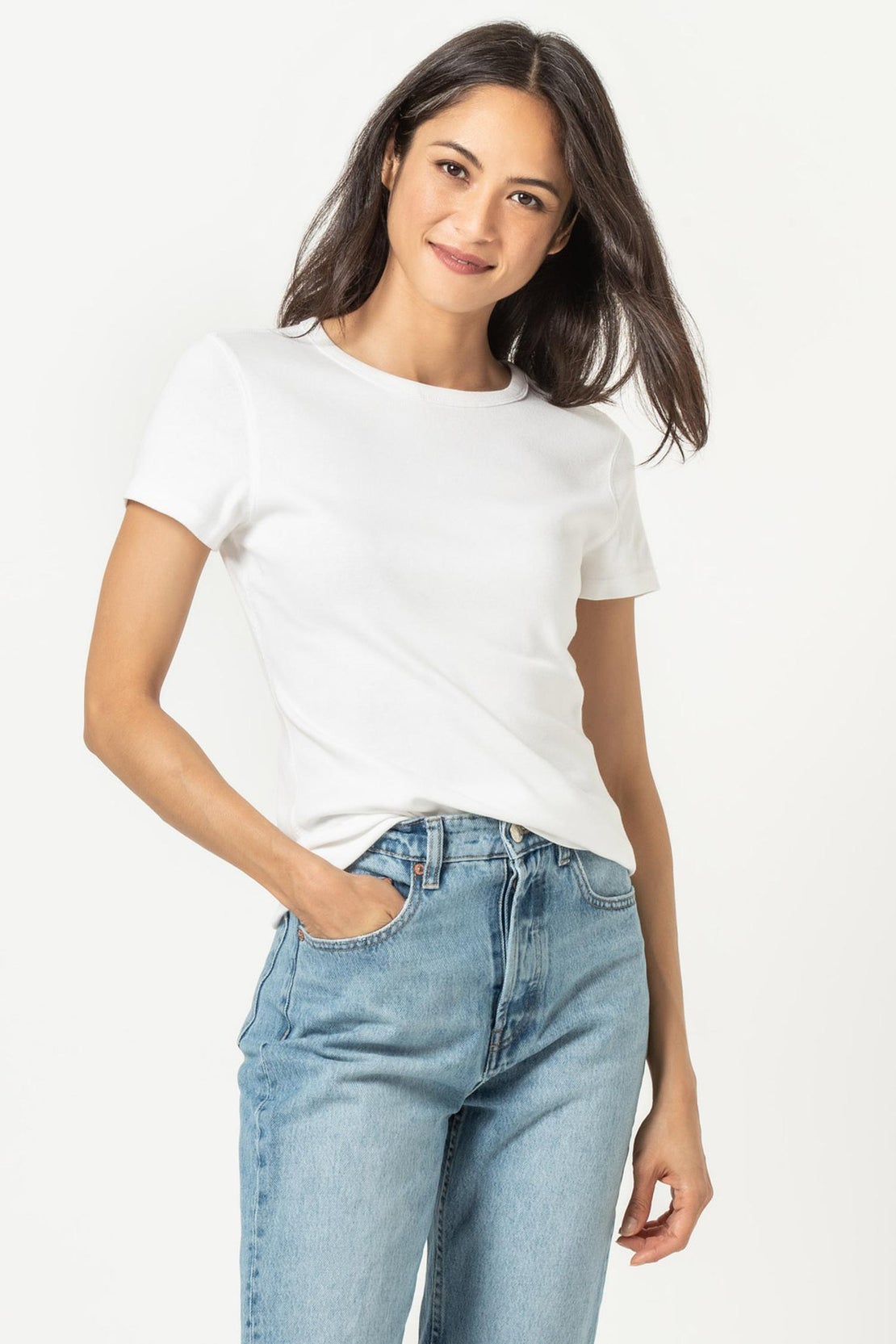 The Short Sleeve Crew is a timeless piece, crafted from durable 1x1 rib fabric for a chic yet comfortable fit. It has a body-hugging silhouette ideal for wearing alone or layering with other pieces. Perfect for any occasion, this versatile tee pairs well with denim, skirts, and everything in between!