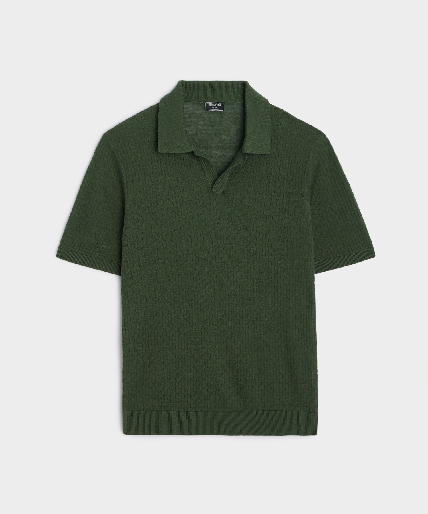 Basketweave Linen Montauk Sweater Polo in Evergreen