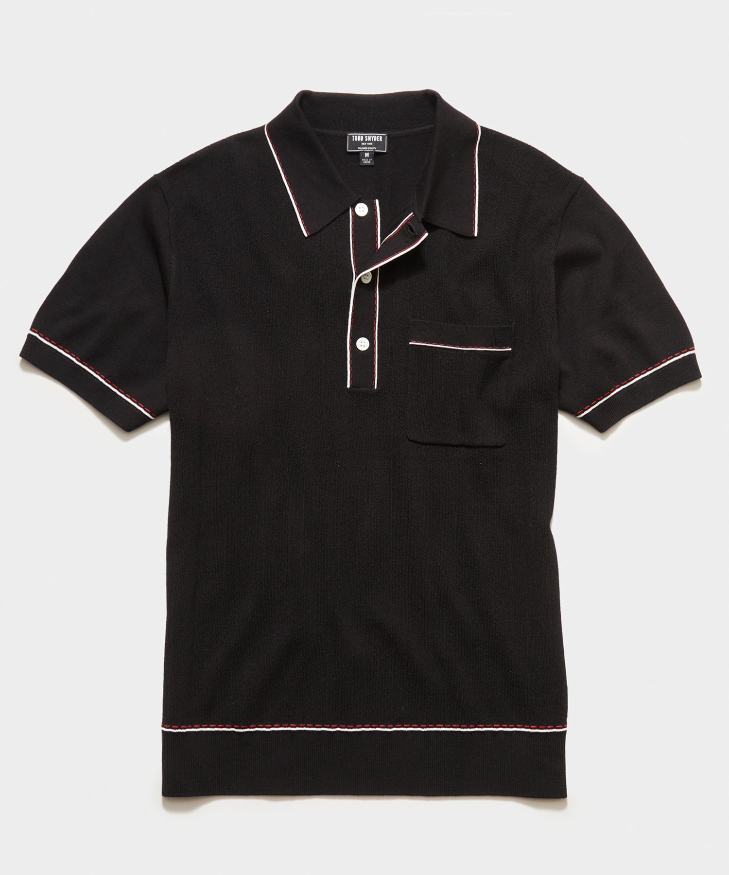 Italian Cotton Silk Tipped Riviera Sweater Polo in Black