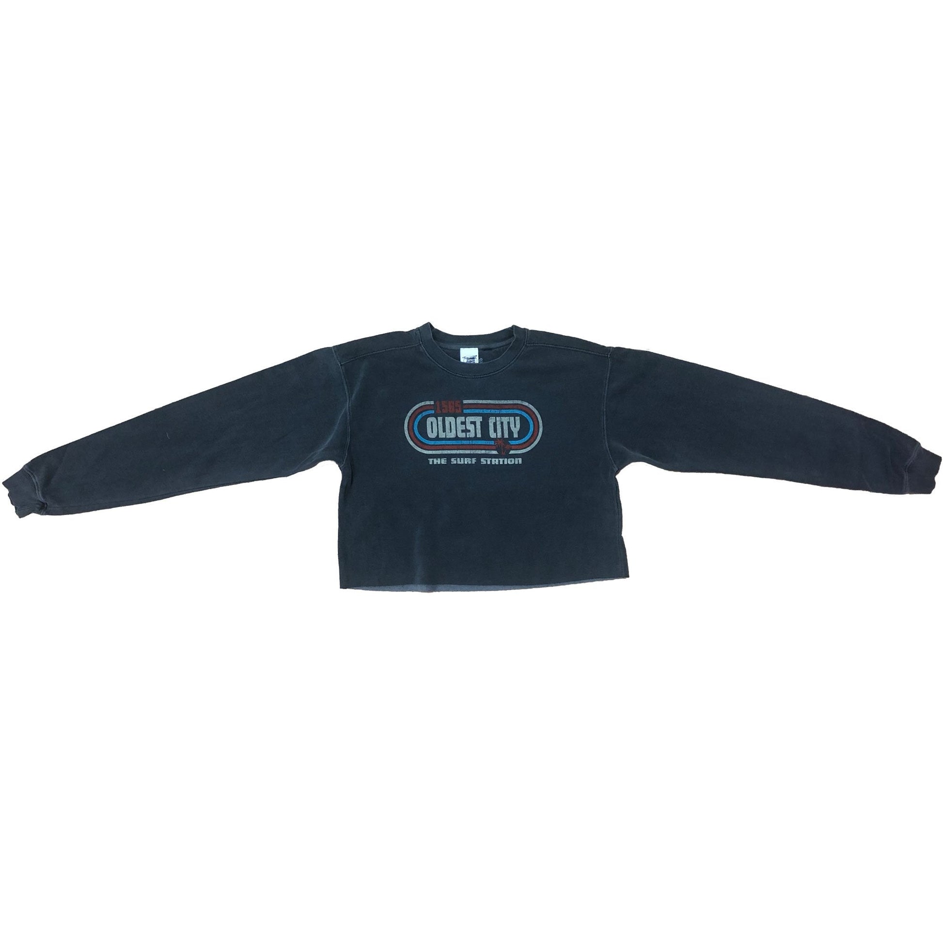 The Surf Station 1565 Women's L/S Cropped Sweater is another classic look from the Surf Station design team with a simple cut. This sweatshirt features a screen printed design on the front, boasting St. Augustine's founding year of 1565. This design is cropped right above the pants line, giving some extra flair to this comfy fit.