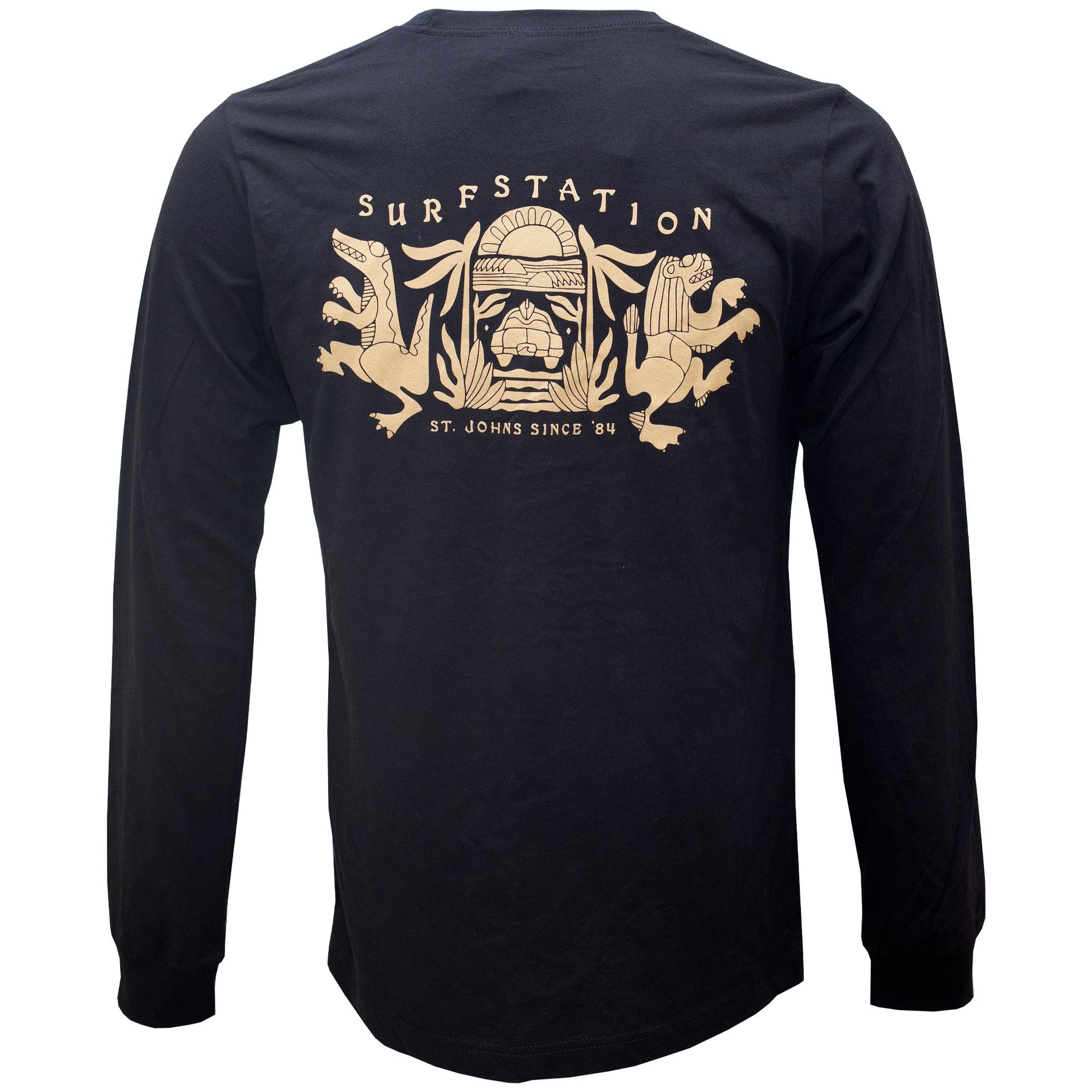 The Surf Station Aztec Men's L/S T-Shirt is a 100% cotton ringspun long sleeve t-shirt with the latest screenprinted design from the Surf Station team. The graphic designer, illustrator and all around shredder Kristina Cancelmi is no stranger to the St. Augustine surf scene. Originally hailing from New Smyrna Beach, FL, Kristina is a former Surf Station employee and team rider. She's since brought her talents to the Pacific Northwest, continuing to create bold, illustrative designs when she's not out catching a few waves herself.
