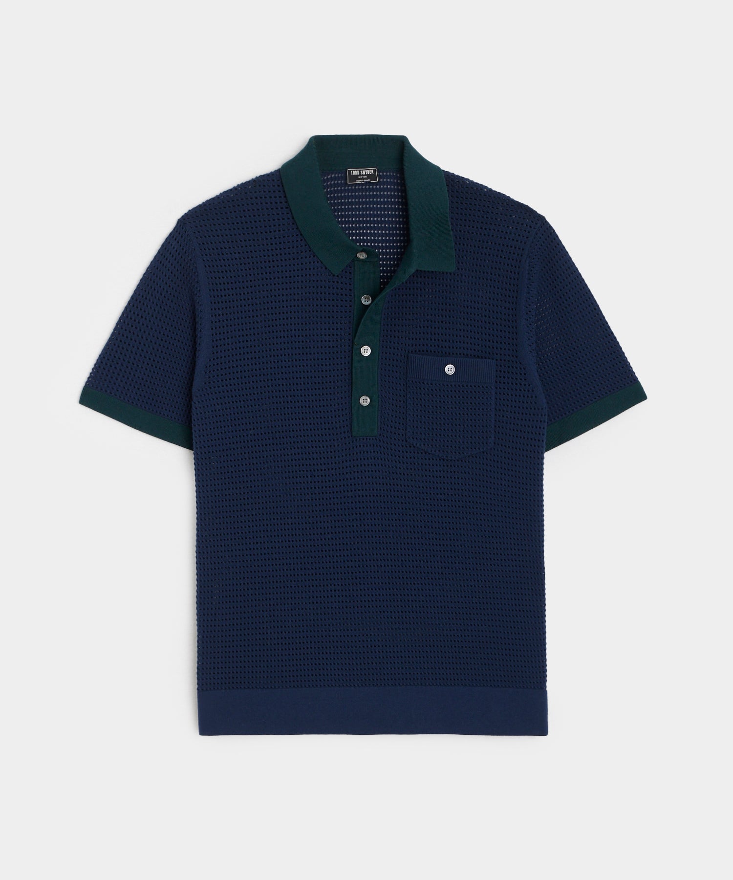 Our bestselling polo silhouette gets a refresh for the season. Inspired by vintage tennis styles, this polo has a sporty feel, thanks in part to the contrasting collar and cuffs. The yarn, by the way, is Supima cotton, which is grown in the USA and is softer and stronger than traditional cotton. It’s knit in a mesh weave that calls to mind retro athletic styles. Throw it on poolside with swim trunks, wear it with white jeans and a sport coat, or even pop it under a linen suit.