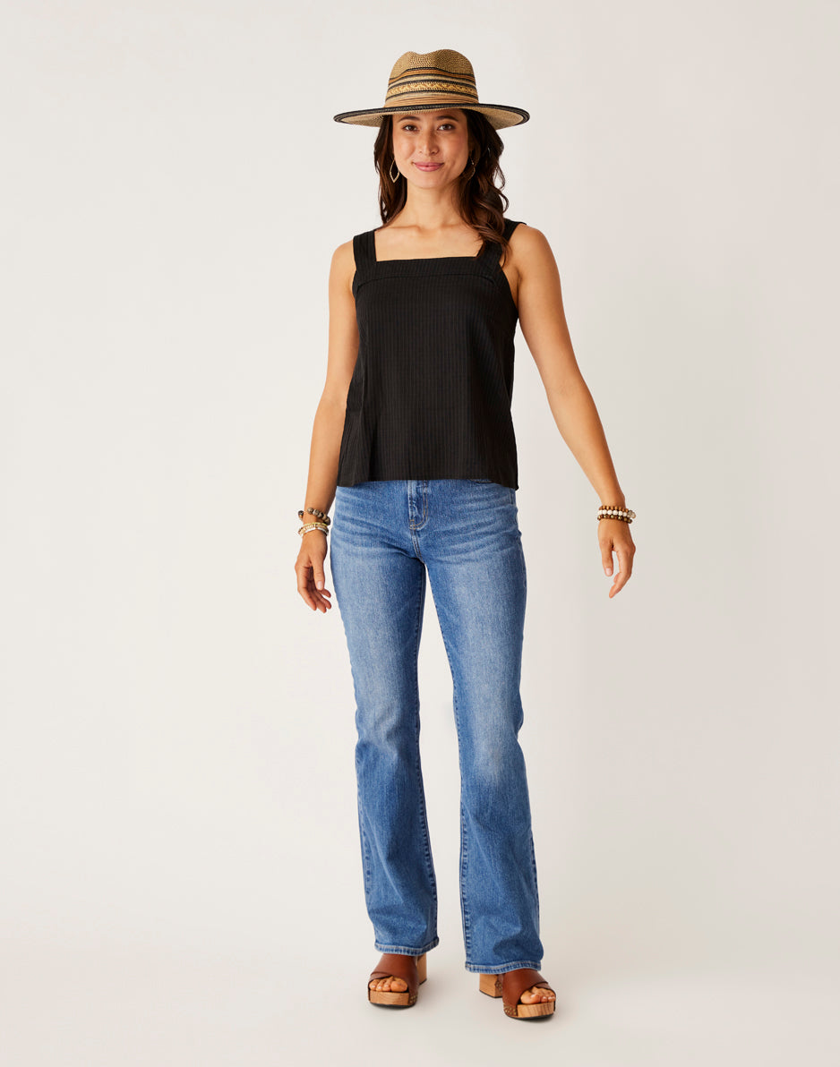 The Tibby keeps it real and lengthens the body and soul with a slightly longer inseam, demi flare, and zip fly with button closure. Fitted through the thighs, hips and waist but a party below the knee where the flare kicks in.