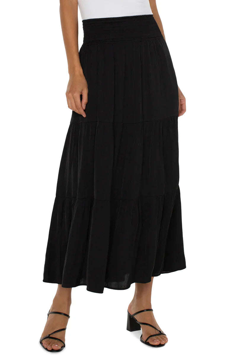 Add a touch of elegance to your wardrobe with our Tiered Woven Maxi Skirt. From day to night, season to season, this skirt is a versatile and functional choice. With side seam pockets and a lining, it's perfect for any occasion. Elevate your style with this must-have piece.