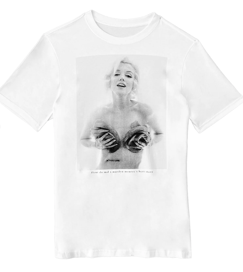Our Unisex Marilyn Roses Tee, part of our exclusive collaboration with the Marilyn Monroe and Bert Stern estates. Classic crew neck shape with exclusive Marilyn Monroe photo print from the photographer’s archive. Relaxed, comfortable fit. Wear with the Let’s Make Love Cheeky, or take it out with your favorite pair of boyfriend jeans.