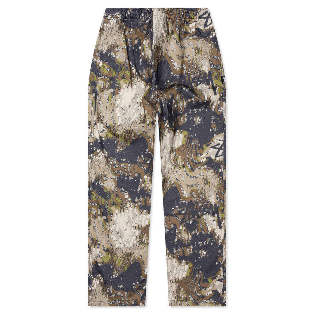 The Stussy Veil Camo Beach Pant is a must-have apparel silhouette. The design features a cotton construction and includes an all-over camo print. The elastic drawcord waistband paired with the faux fly and on-seam pockets offer functional detailing. The on-seam welt pocket is also included while the flag label finishes the design.