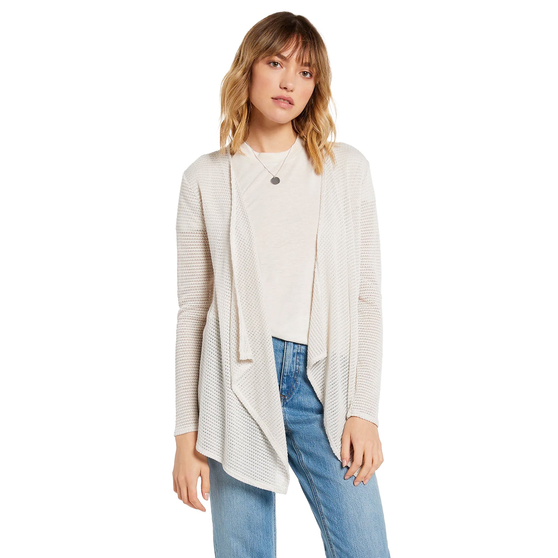 A lightweight layer that looks good any time of year, the Go Go Wrap is a textured open front sweater.
